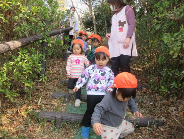 2024.03.06 園日記 園日記3月_お散歩① 天気の良い日にみんなでお散歩🎵今日は“トトロの森に行くよ🌳 春のお花がさきはじめていて、子どもたちも興味津々🌟 階段道もこんなに上手にあるけるようになったよ。